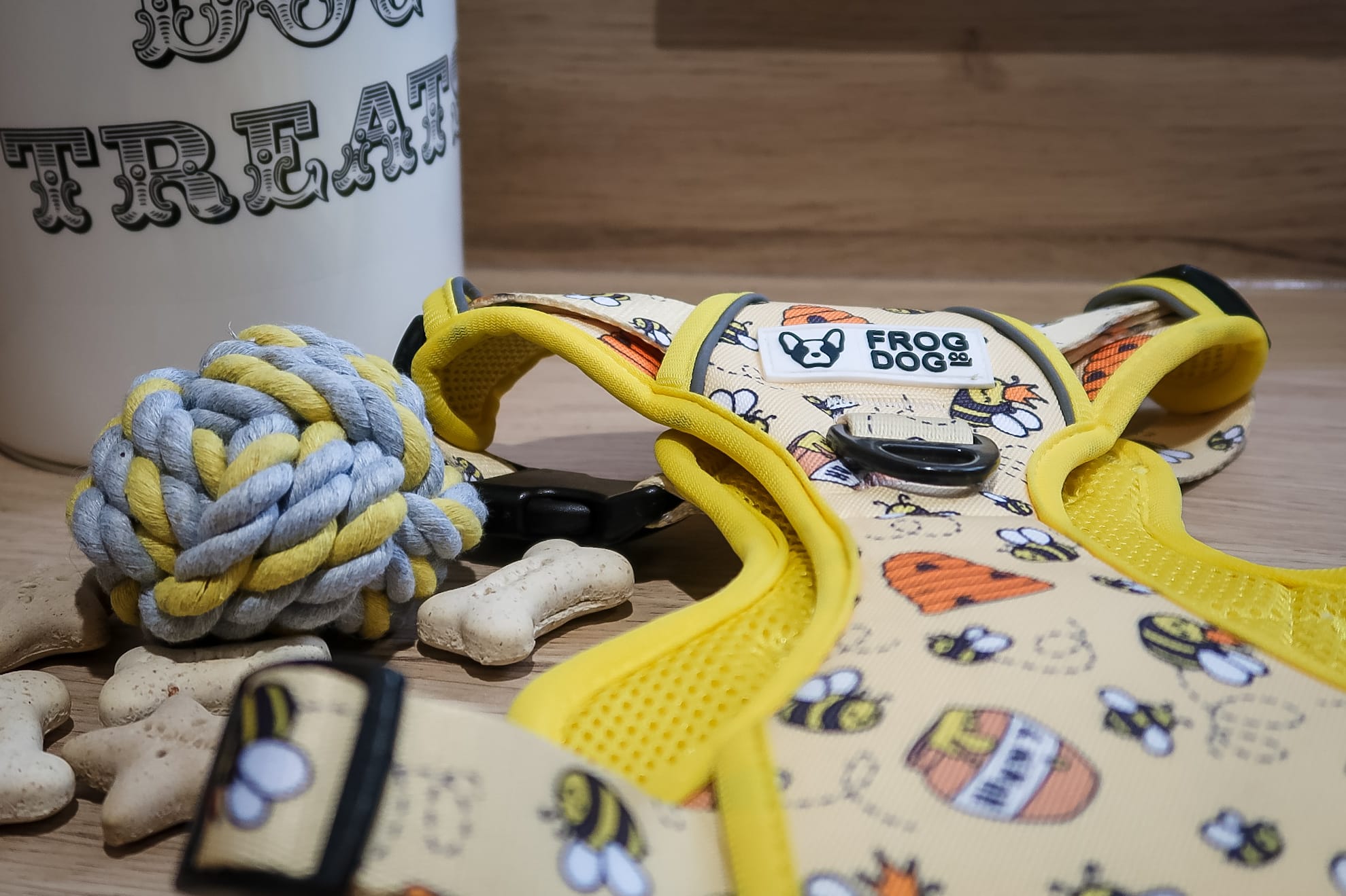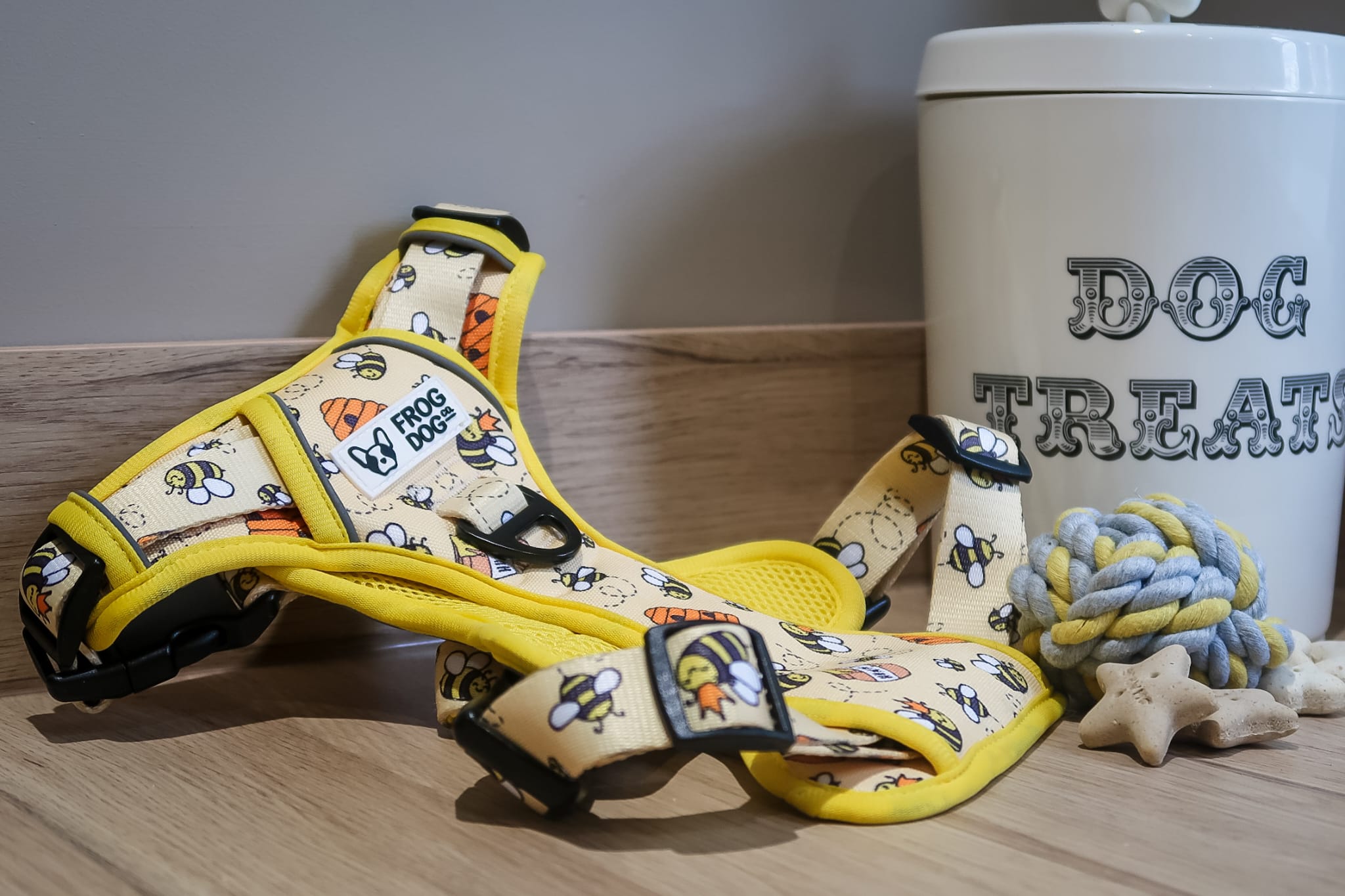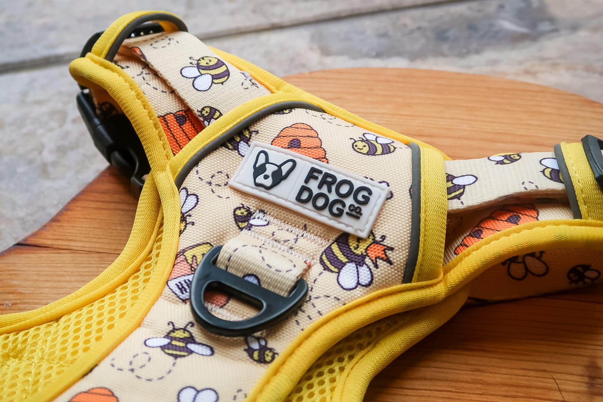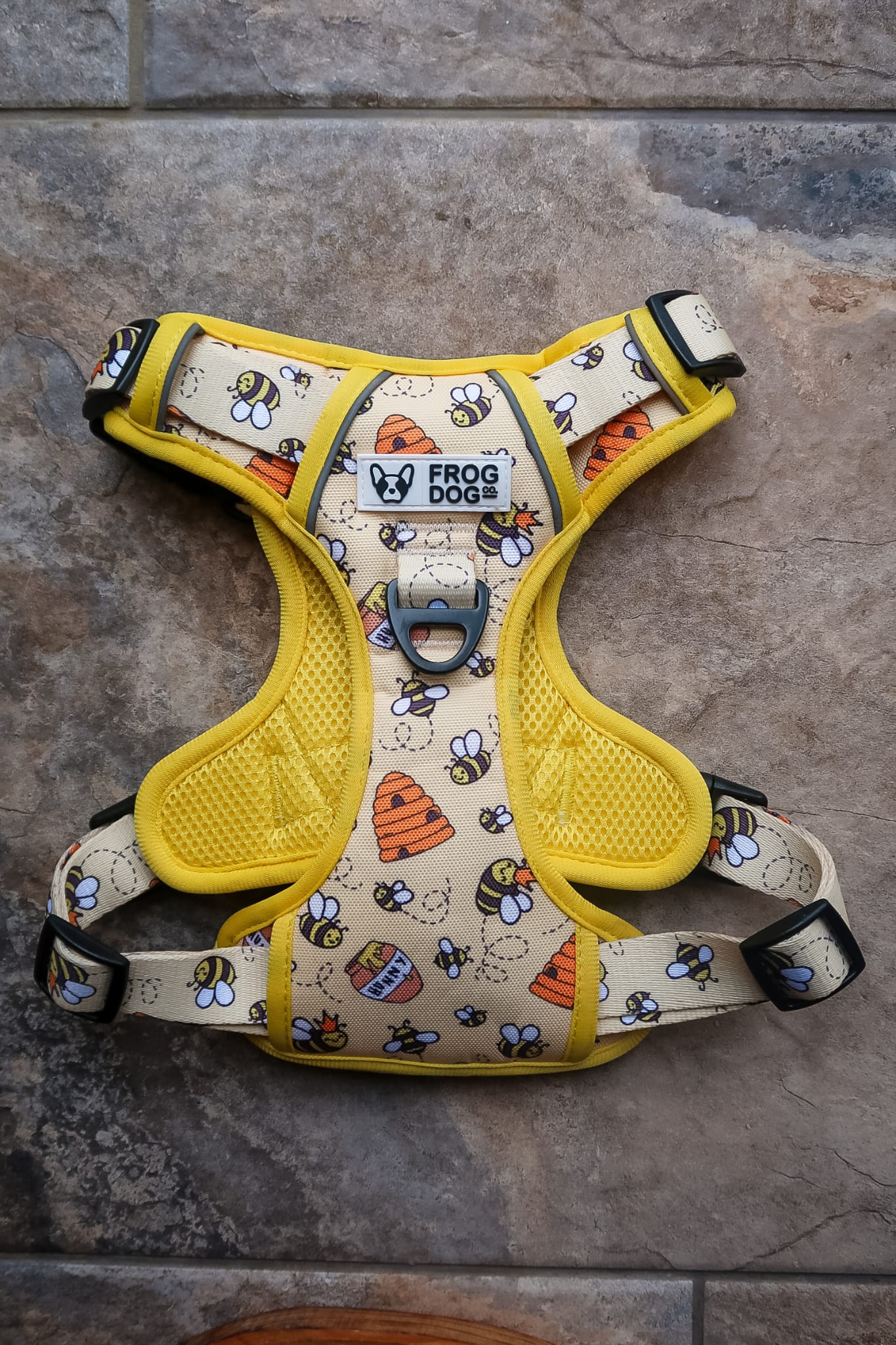 Currently available in our uplifting BeeKind print, this step-in dog harness is easy to use and packed with features to keep your pup safe and comfortable on every adventure.