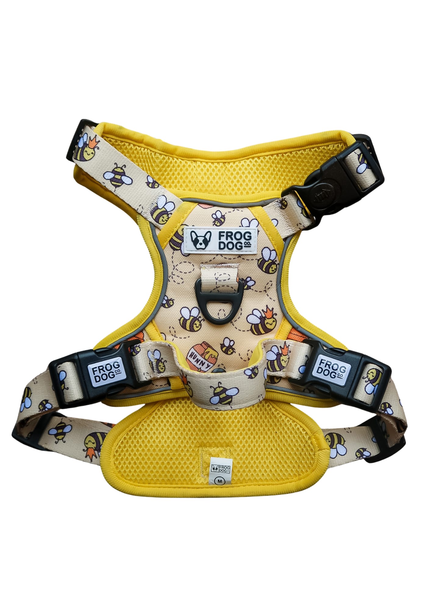 The ThreePoint Trail Harness in BeeKind print — for dogs who live for big adventures, muddy puddles, and the trail ahead.