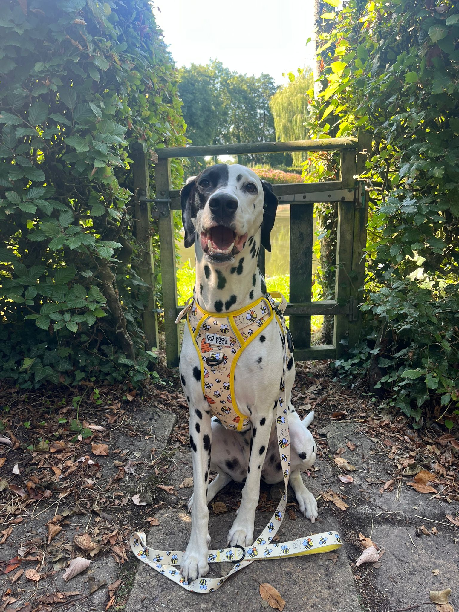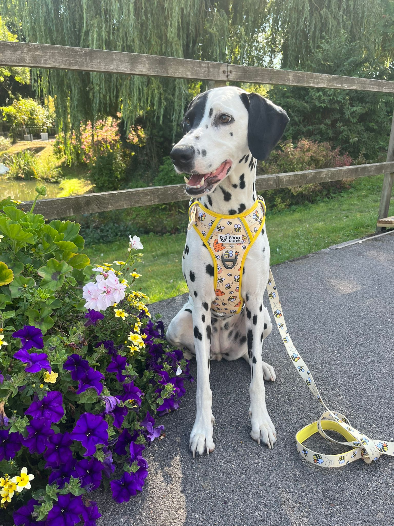 Currently available in our uplifting BeeKind print, this step-in dog harness is easy to use and packed with features to keep your pup safe and comfortable on every adventure.
